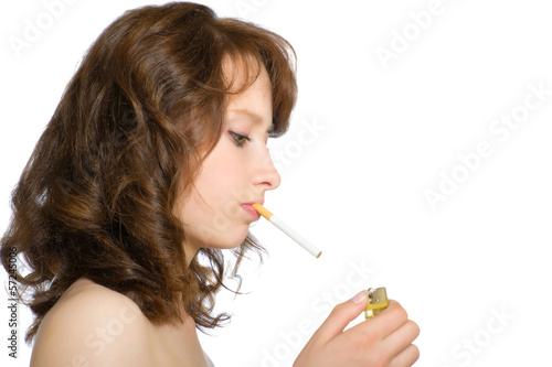© pavelkozlovsky, Obraz premium The girl with a cigarette