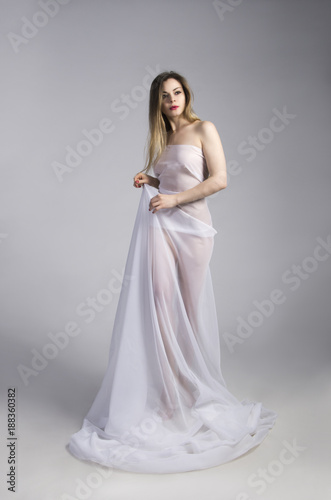 Fototapeta premium The girl with long hair in a light, white dress.