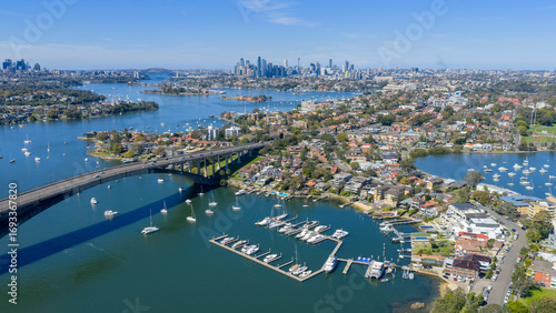 © 169169, Fototapeta premium The Gladesville Bridge crossing the Parramatta river at Drummoyne.