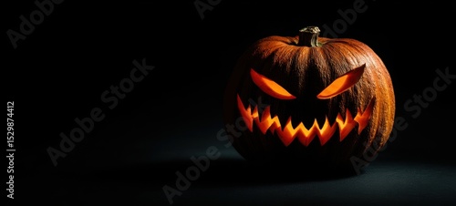 © Studio Nova, Fototapeta premium The glowing jack-o-lantern with a sinister expression in darkness