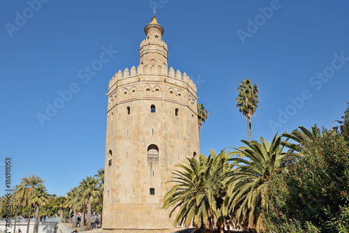 © Tomasz Warszewski, Fototapeta premium The Gold Tower (La Torre del Oro) Sevilla, Spain