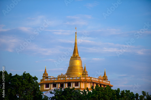 Naklejka premium The Golden Mount at Wat Saket, Travel Landmark of Bangkok THAILAND