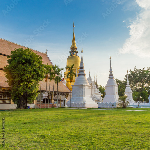 Naklejka premium The golden pagoda at Wat Suan Dok, Chiang mai, Thailand, with be