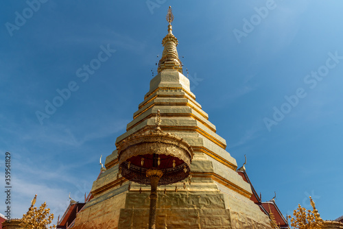 Fototapeta premium The golden pagoda with blue sky background.