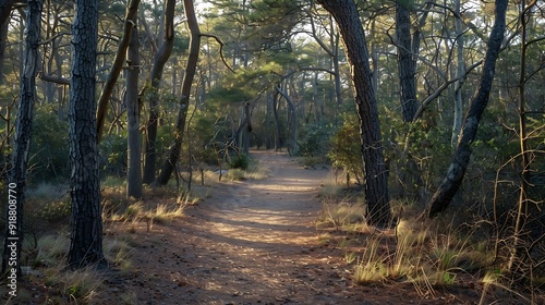 © Generative AI, Naklejka premium The Gordons Pond Trail wanders through nature at Cape Henlopen State Park on the Eastern Shore This 32mile accessible trail offers stunning views : Generative AI