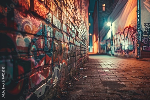 Fototapeta premium The graffiti is located in a bad part of the city. A selective focus is applied to the background and there is some copy space.