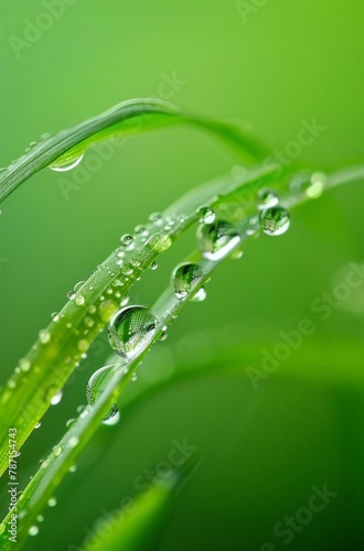 © SHI, Fototapeta premium The grain rain, the green grass and dew in the fields, the dim background of spring