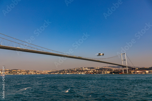 Fototapeta premium The grand bridge of Sultan Mehmed Fatih through the Bosphorus, Turkey