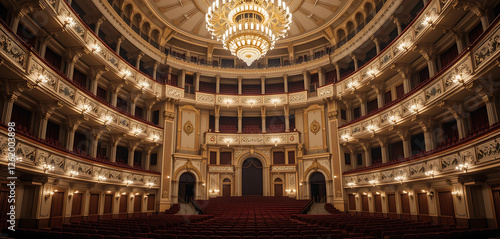 Obraz premium The grand interior of a historic opera house, with opulent balconies, velvet...