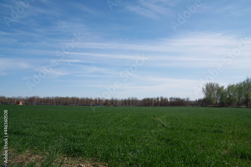 © zhenya, Fototapeta premium The gratifying wheat seedlings under the blue sky