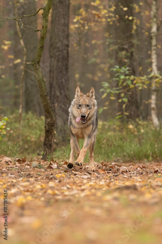 © vaclav, Fototapeta premium The gray wolf or grey wolf (Canis lupus) standing on a rock