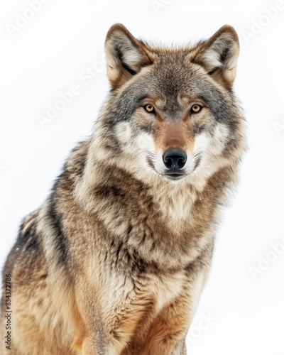 © Eyestetix Studio, Fototapeta premium the Gray Wolf, portrait view, white copy space on right Isolated on white background