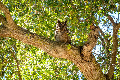 © Olga, Fototapeta premium The great horned owl (Bubo virginianus) resting in tree.