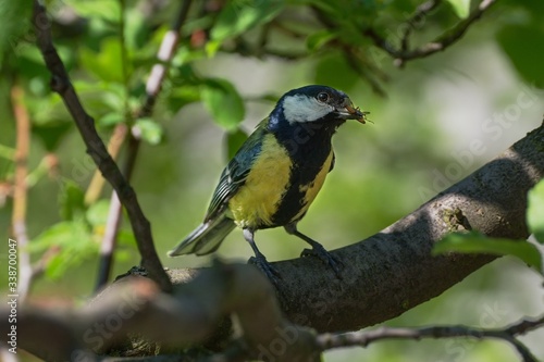 © Milan, Obraz premium The great tit carries the insects to the young. Czechia. Europe.