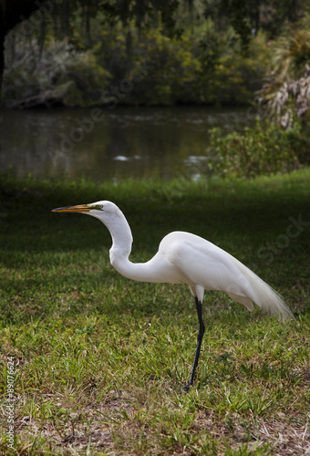 © nostalgi, Obraz premium The great white egret on a background of green grass. White Crane