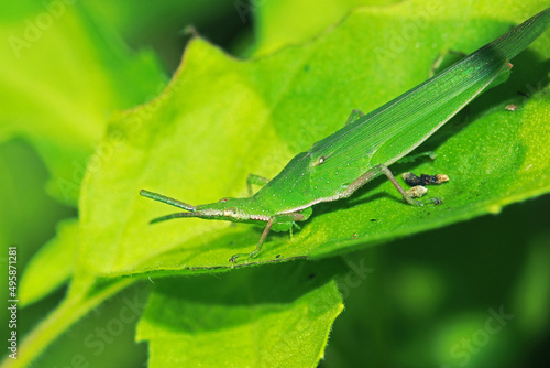 © Sarin, Fototapeta premium The green grasshopper on a leaf