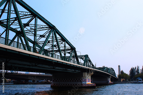 Obraz premium The green iron bridge over the Chao Phraya River in Bangkok