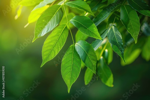 Obraz premium The green leaves are softly blurred. selective focus Abstract green blurred...