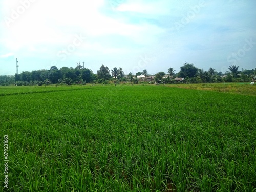 © elisa, Fototapeta premium the green rice of farmers in namang, central bangka is a feast for the eyes. paddy which will be processed into rice