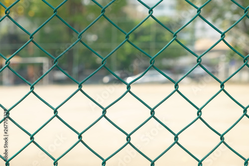 Fototapeta premium the green steel net with futsal and Basketball court empty No player Be left...