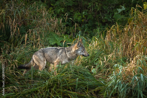 © Szymon Bartosz, Obraz premium The Grey Wolf chasing the deer. Bieszczady, Carpathian Mountains. Poland.
