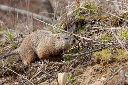 Naklejka premium The groundhog (Marmota monax), also known as a woodchuck