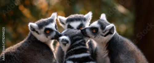 © ckybe, Obraz premium The group of lemurs participates in mutual grooming activities.
