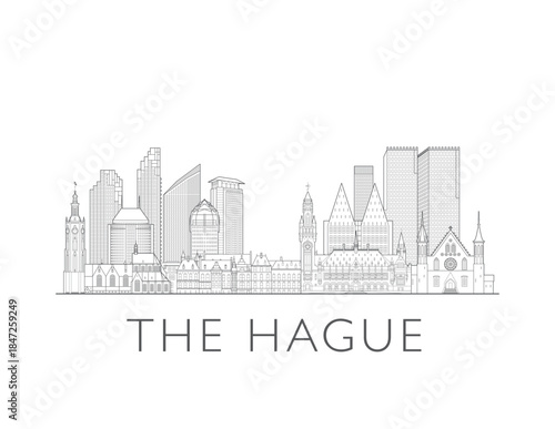 © NAK, Fototapeta premium The Hague Netherlands cityscape illustration skyline drawing