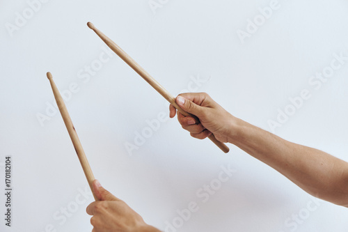 © SHOTPRIME STUDIO, Fototapeta premium The hands hold the drumsticks