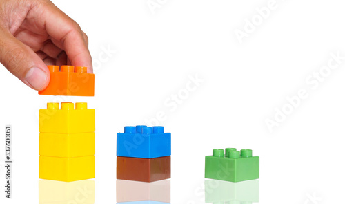 © จิตรกร เนาเหนียว, Obraz premium The hands of men are building blocks isolated on white