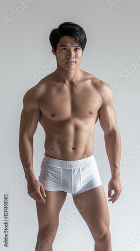 © PMBYTK, Fototapeta premium The handsome Asian male in white swimming pant