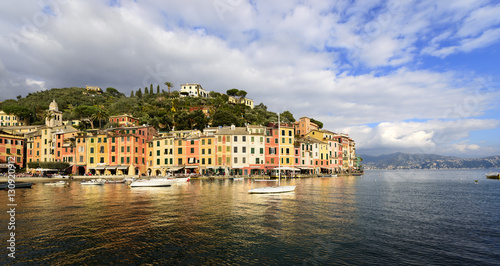 Fototapeta premium The harbor of Portofino with boats and the colorful houses. Genova, Liguria, Italy