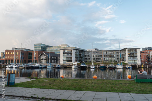 © Hannes, Obraz premium the harbour of the town Odense in Denmark