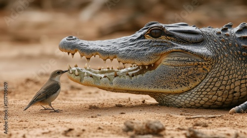 © Black, Fototapeta premium The harmonious coexistence of crocodiles and birds
