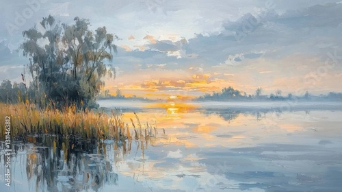 Fototapeta premium The harmony of nature: sunset and lake reflection.
