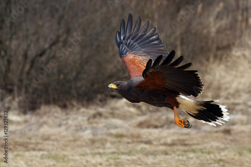 Obraz premium The Harris's hawk (Parabuteo unicinctus) formerly known as the bay-winged...