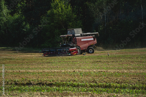 © Davyd Varabyou, Fototapeta premium The harvester is working in the field. The combine harvester harvests wheat