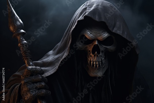 Obraz premium the haunting arrival of an epic grim reaper character, Generative AI