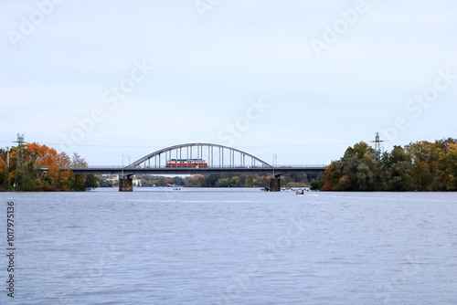Fototapeta premium the Havel river with boat near Potsdam in autumn, Germany