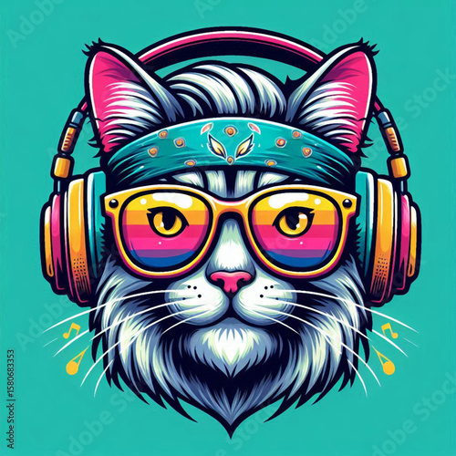Fototapeta premium the head of a cat, cat, cat with headphone, cat vector, cat with a bow tie,...