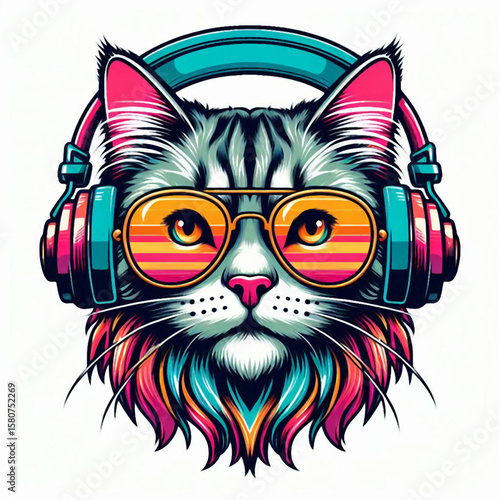 Fototapeta premium the head of a cat, cat, cat with headphone, cat vector, cat with a bow tie,...