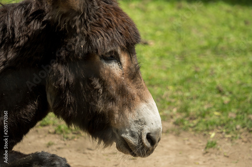 © sandradombrovsky, Fototapeta premium The head of a donkey in the sun