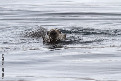 © Tarpan, Obraz premium The head of a sea otter floating in the water near the shore in winter