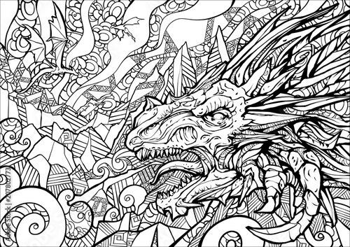 © warmtail, Fototapeta premium The head of a snarling dragon