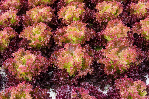 Obraz premium The head of Red leaf lettuce in farm, Hydroponic cultivation
