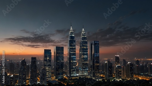 Obraz premium The heart of a metropolis cloaked in perpetual twilight, sleek skyscrapers glisten with the promise of tomorrow's technology ai_generated