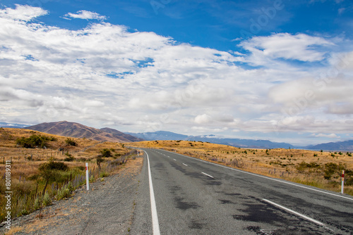 © Danny Ye, Fototapeta premium the highway in south island new zealand. the backgroud is southern alps mountains.