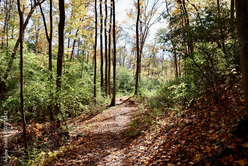 © Al, Fototapeta premium The hiking trail in the fall forest on a sunny day.