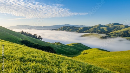 © Space Priest, Obraz premium the hills are green and the sky is clear