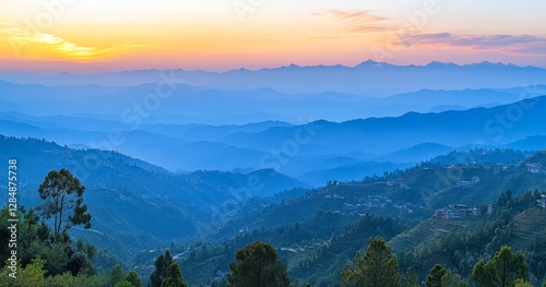 Obraz premium The Himalayas present a stunning panoramic view, with snow-capped peaks...